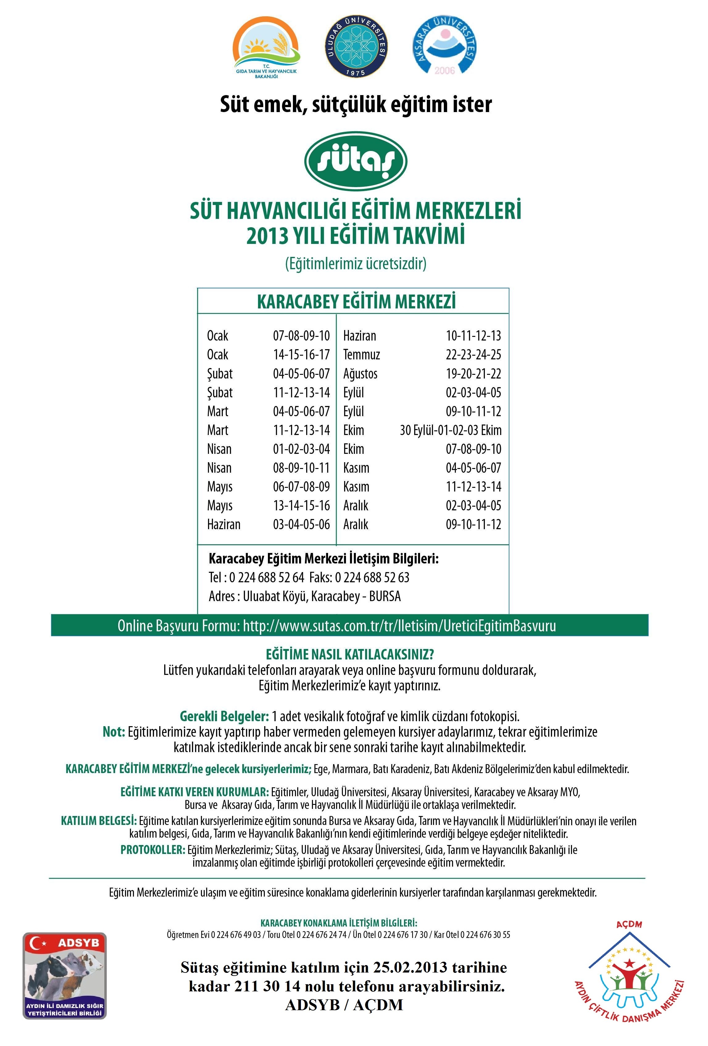 SÜTAŞ Süt Hayvancılığı Eğitim Merkezi 2013 YILI KURS PROGRAMI