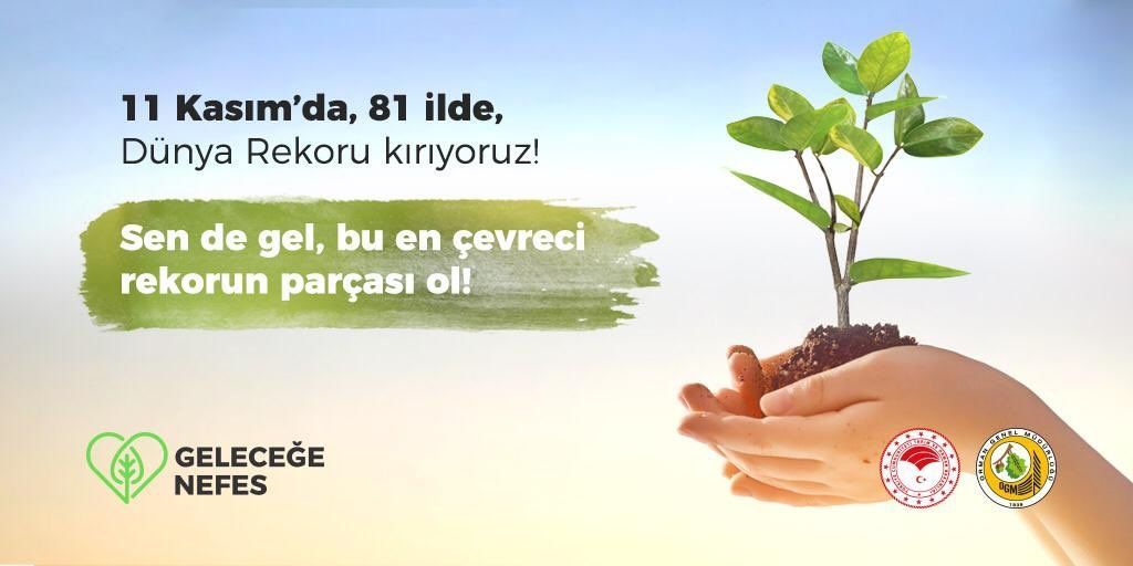 11 milyon ağacın geleceğe miras bırakılacağı seferberlikle, dünya rekoruna da koşulacak. Türkiye'yi Guinness Rekorlar Kitabı'na taşıyacak bu ağaçlandırma seferberliğine 'Geleceğe Nefes' adı verildi.