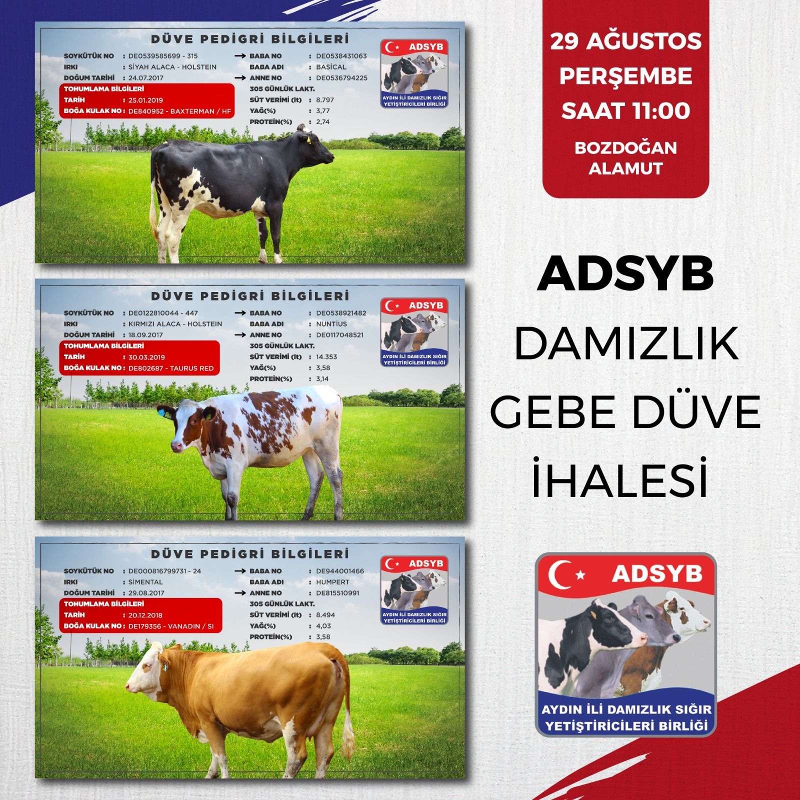 Birliğimiz’in Tarım ve Orman Bakanlığı tarafından desteklenen Damızlık Düve Merkezi Projesi kapsamında Alamut Mahallesi - Bozdoğan adresindeki Gebe Düve İşletmemizde yetiştirilen Hastalıktan Ari simental ve holstein gebe düvelerimiz teklif alınarak satılacaktır.